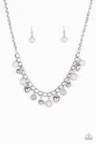 Featuring polished and glassy finishes, gray beads swing from the bottom of a double-linked silver chain. Classic silver beads and shiny silver heart charms swing between the colorful accents, creating a flirty fringe below the collar. Features an adjustable clasp closure.